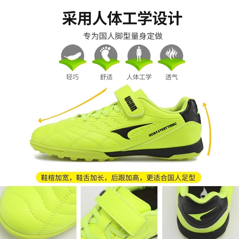 UCAN锐克新款专业足球鞋儿童足球鞋男孩透气TF碎钉鞋跑步比赛鞋