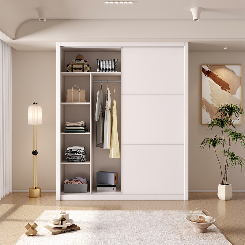 奶油风家用卧室儿童推拉门衣柜滑动移门橱柜成人简易一门到顶定制