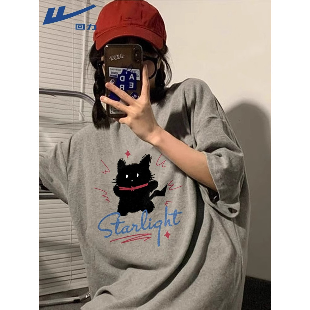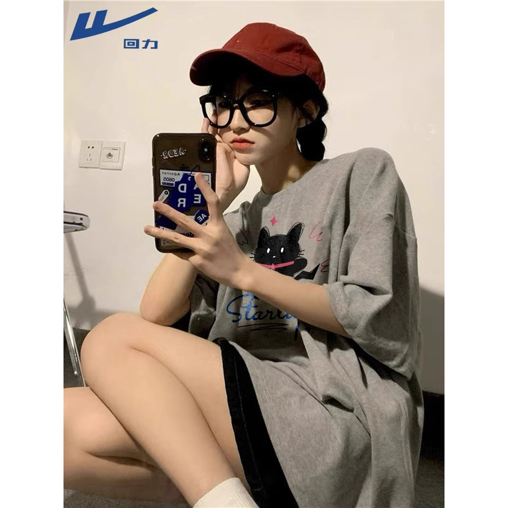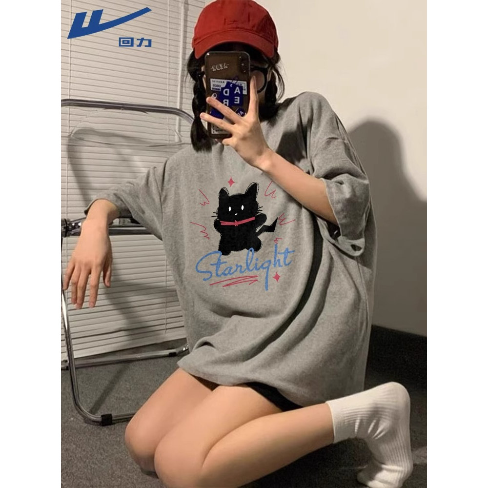 回力短袖t恤女夏季新款宽松大码休闲女学生半袖初高中生韩版上衣A