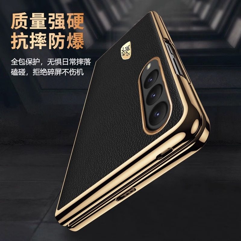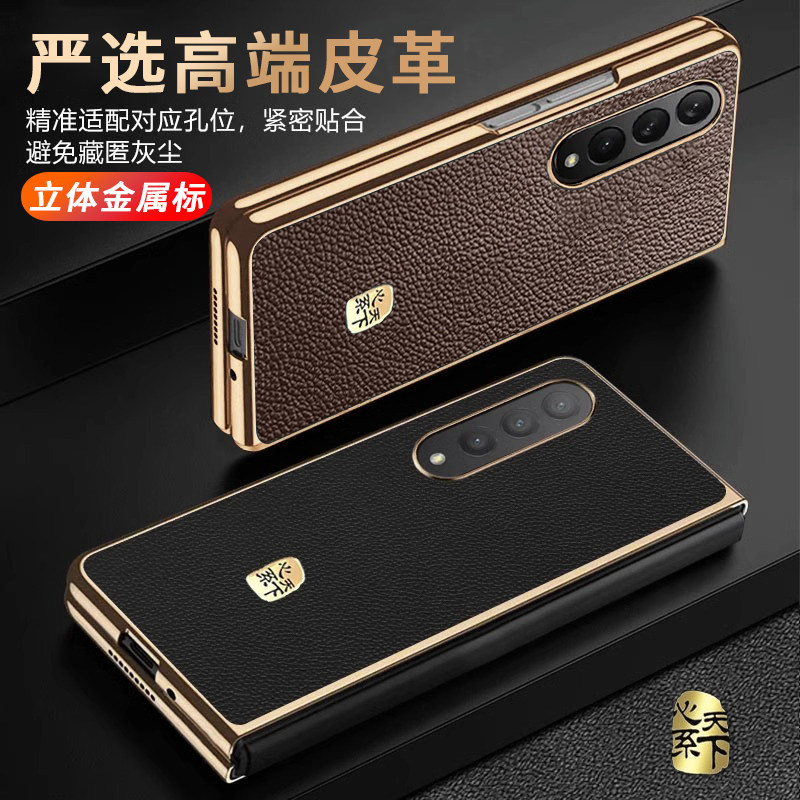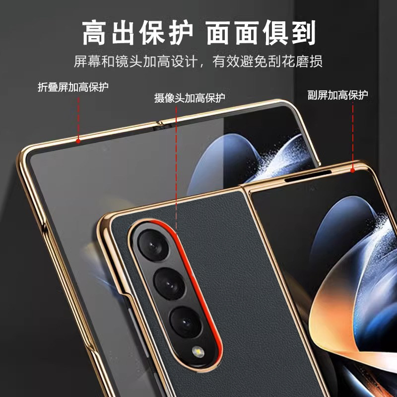 适用于三星fold4手机壳w23折叠屏新款电镀真皮超薄galaxy zfold3保护套全包防摔w22外壳创意心系天下限量网红