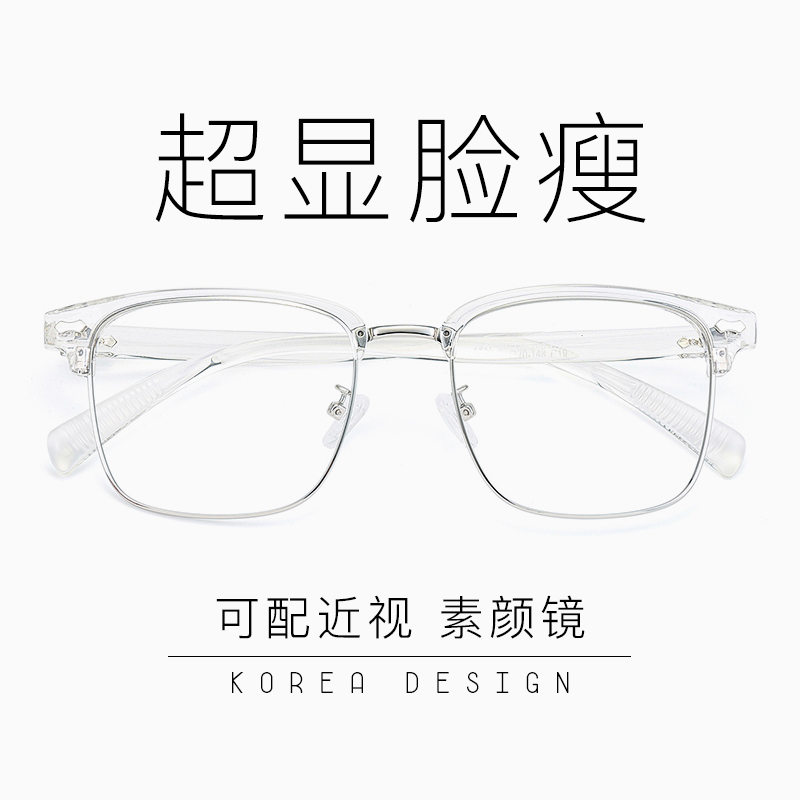 新款大框复古眼镜方框防蓝光辐射男半框圆脸大脸近视眼镜框女潮款