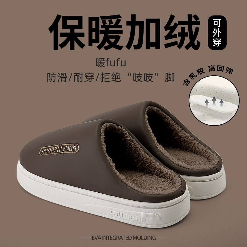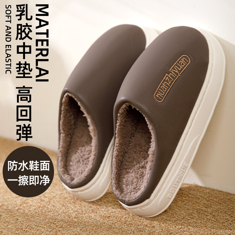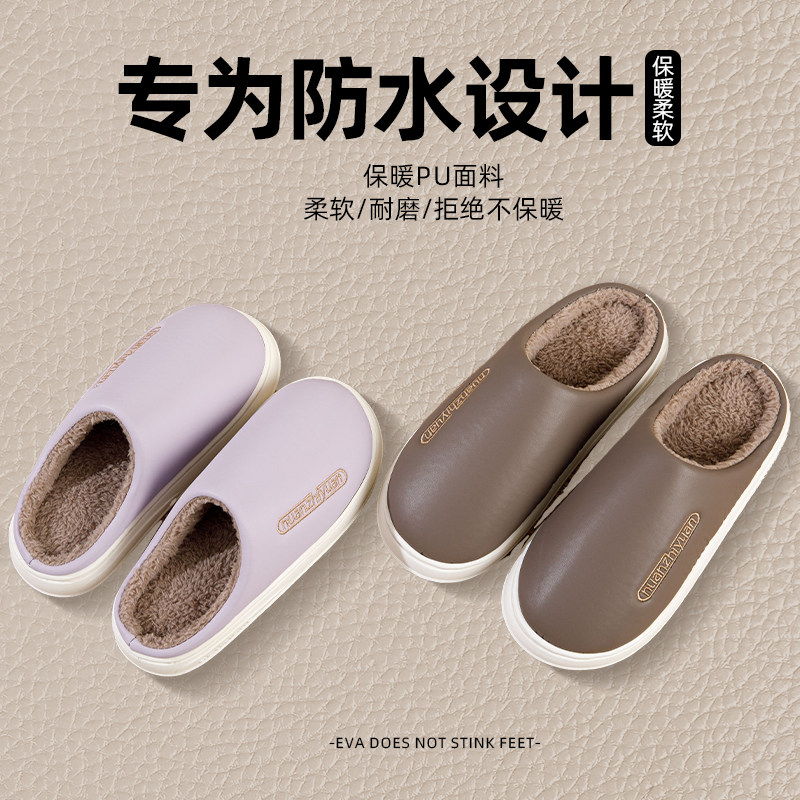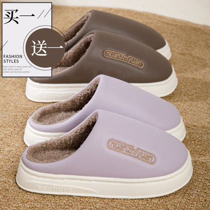 买一送一棉拖鞋男士冬季2024新款厚底防水保暖防滑加绒情侣棉拖女