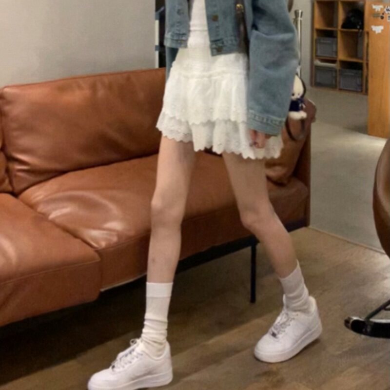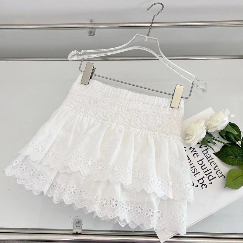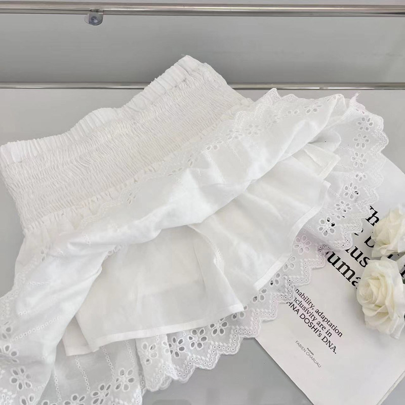 白色蕾丝边半身裙女2023夏季新款小个子A字裙洋气高腰显瘦短裙子