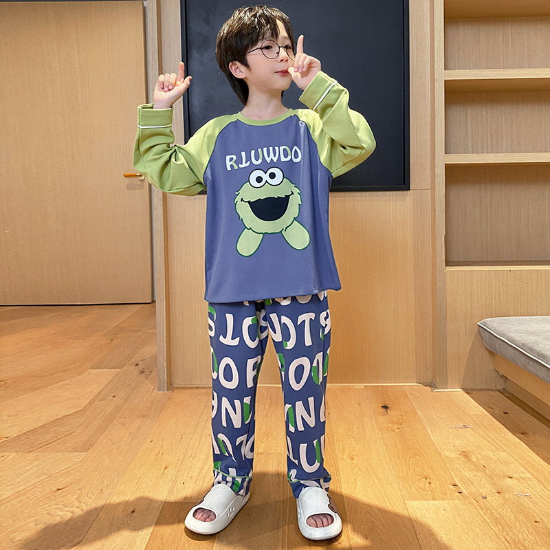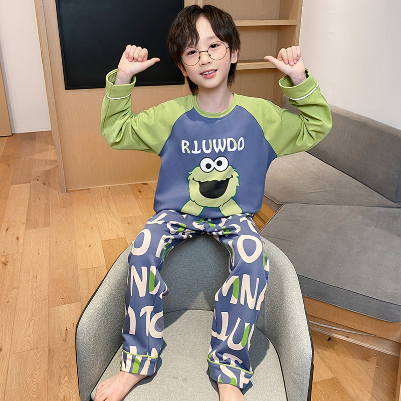 芬腾男童睡衣春秋季纯棉长袖宝宝卡通中大童秋冬小男孩全棉家居服