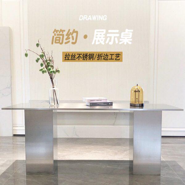 北欧餐桌不锈钢桌子工业风办公桌现代会议桌简约茶桌长方形洽谈桌