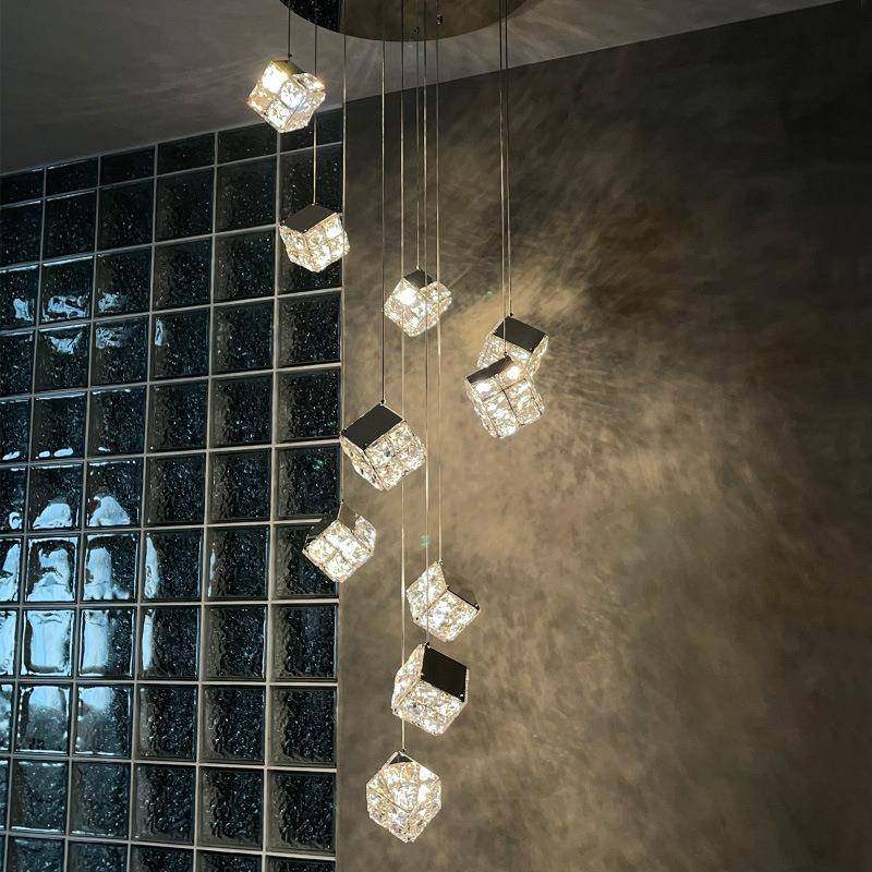 挑魔空楼梯吊灯餐创968意个性艺术设计师款方灯厅灯lo吊ft复式水