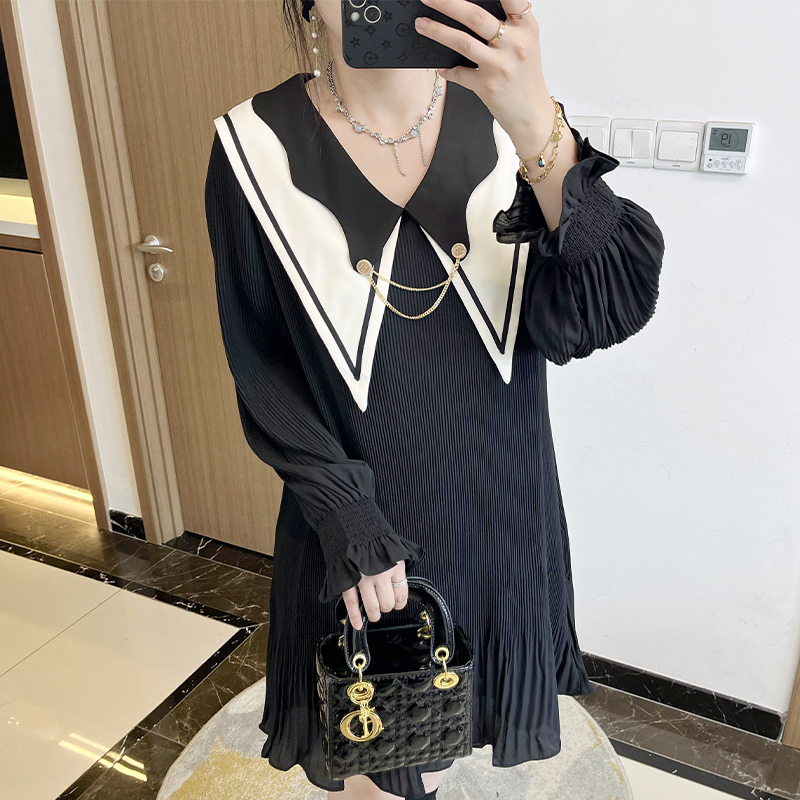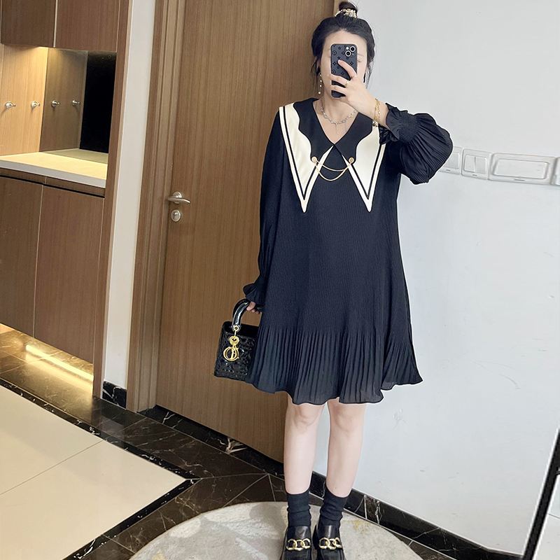 2024秋季新款法式复古赫本风高级感压褶显瘦连衣裙大码女装胖mm