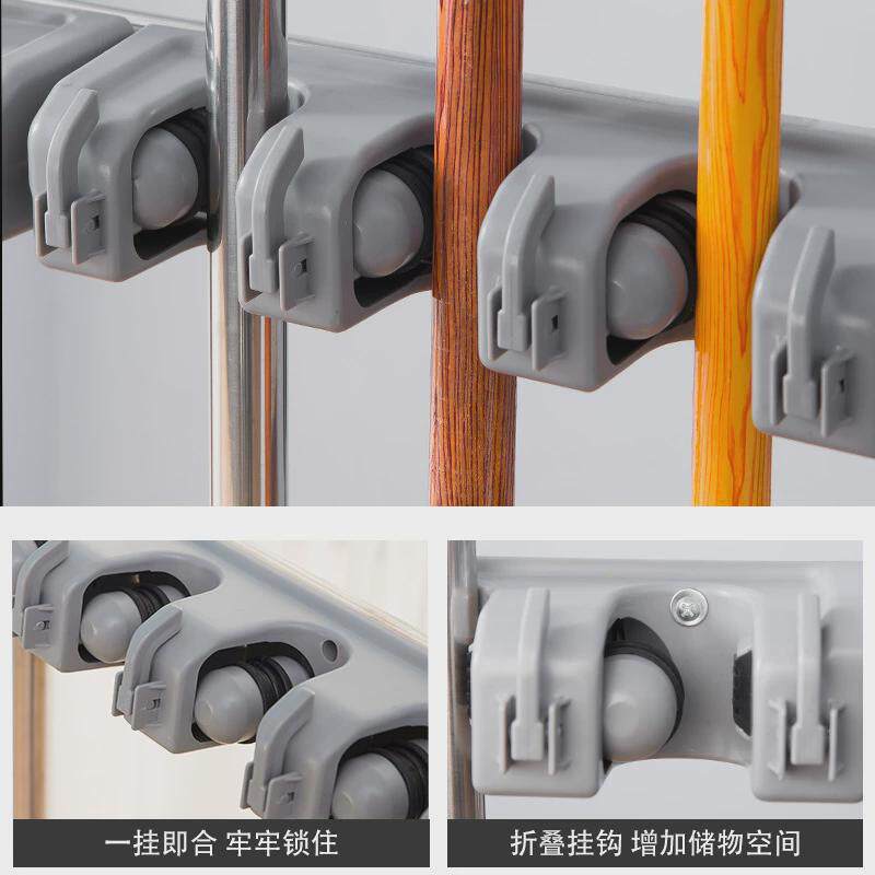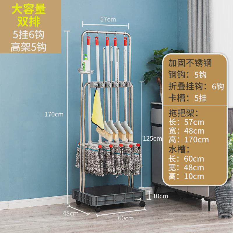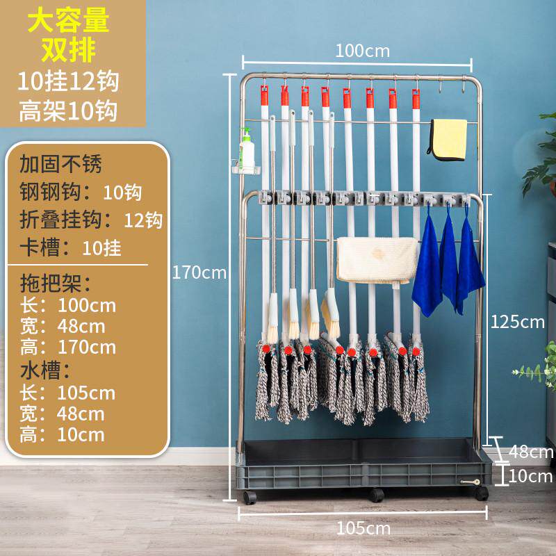 可移动落地式拖把架扫把拖把收纳架墩布清洁工具不锈钢双排挂钩架