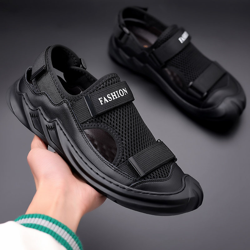 凉鞋男夏季真皮透气包头网面户外休闲洞洞鞋潮罗马防滑沙滩鞋男款
