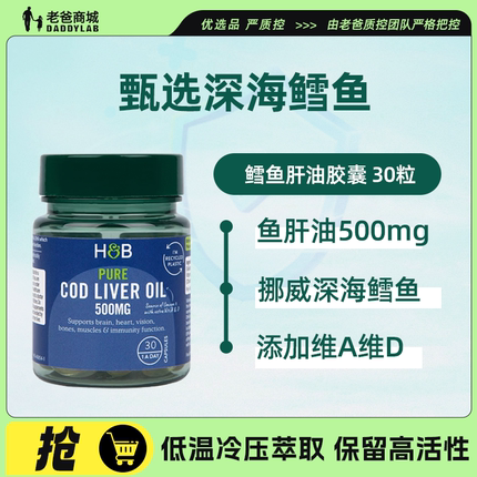 老爸评测进口hb荷柏瑞深海鳕鱼鱼肝油胶囊中老年成人保税仓发