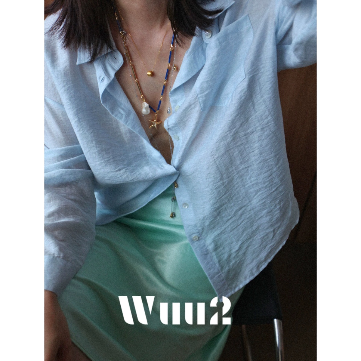 Wuu2法式天丝亚麻蓝色衬衫防晒衫