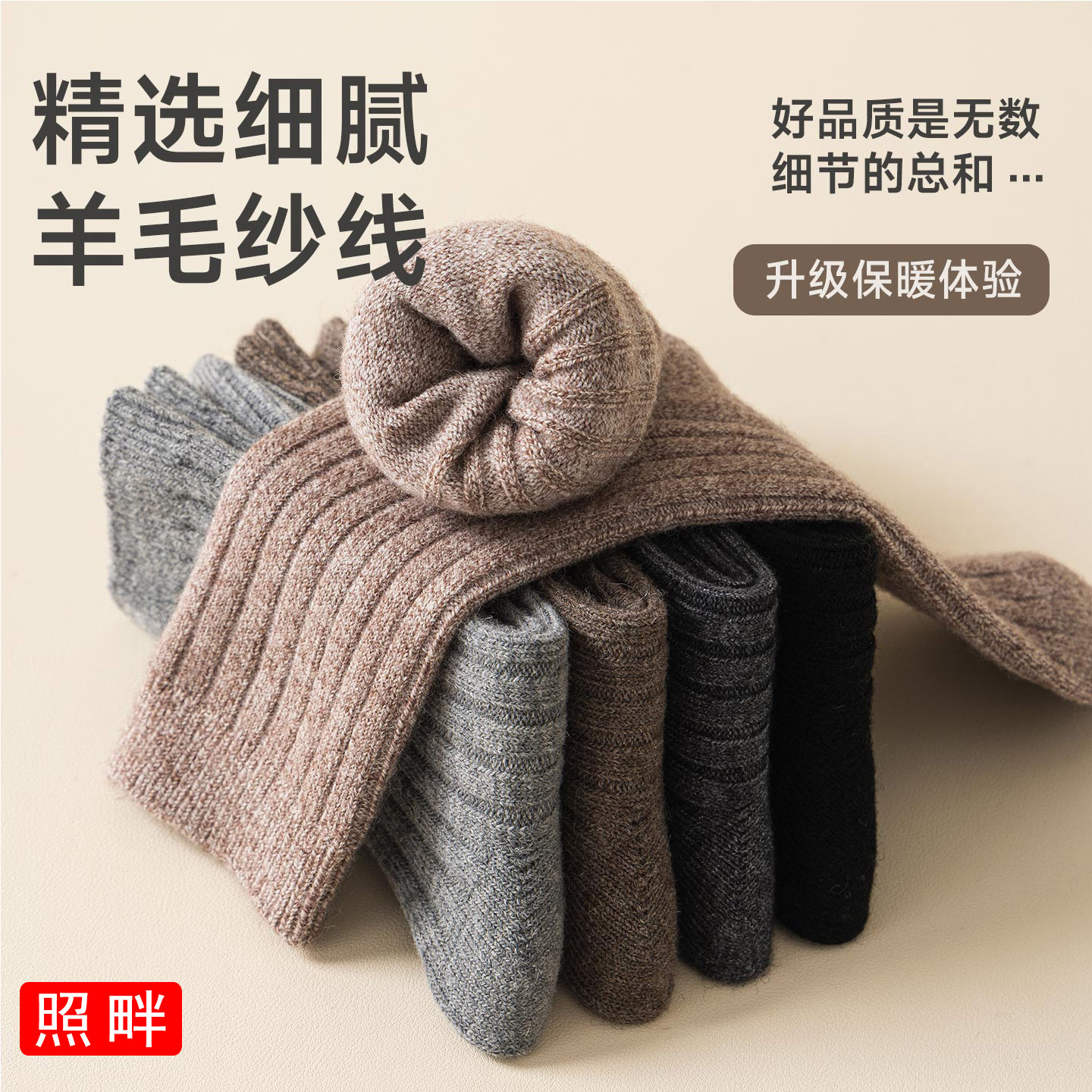 羊毛袜子男士秋冬季加厚保暖中筒防臭吸汗高筒袜商务松口男袜冬天