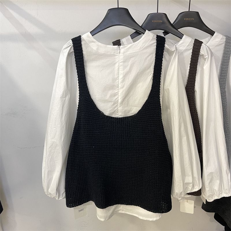 减龄针织马甲衬衫两件套上衣女2025年新款宽松叠穿早秋氛围感穿搭