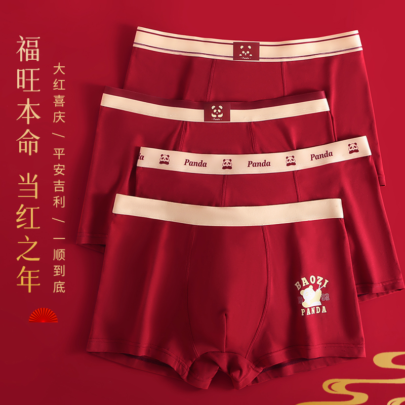 猫人青少年儿童内裤本命年红色男大童初高中学生纯棉大红四角短裤