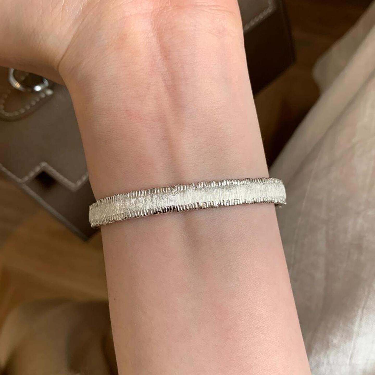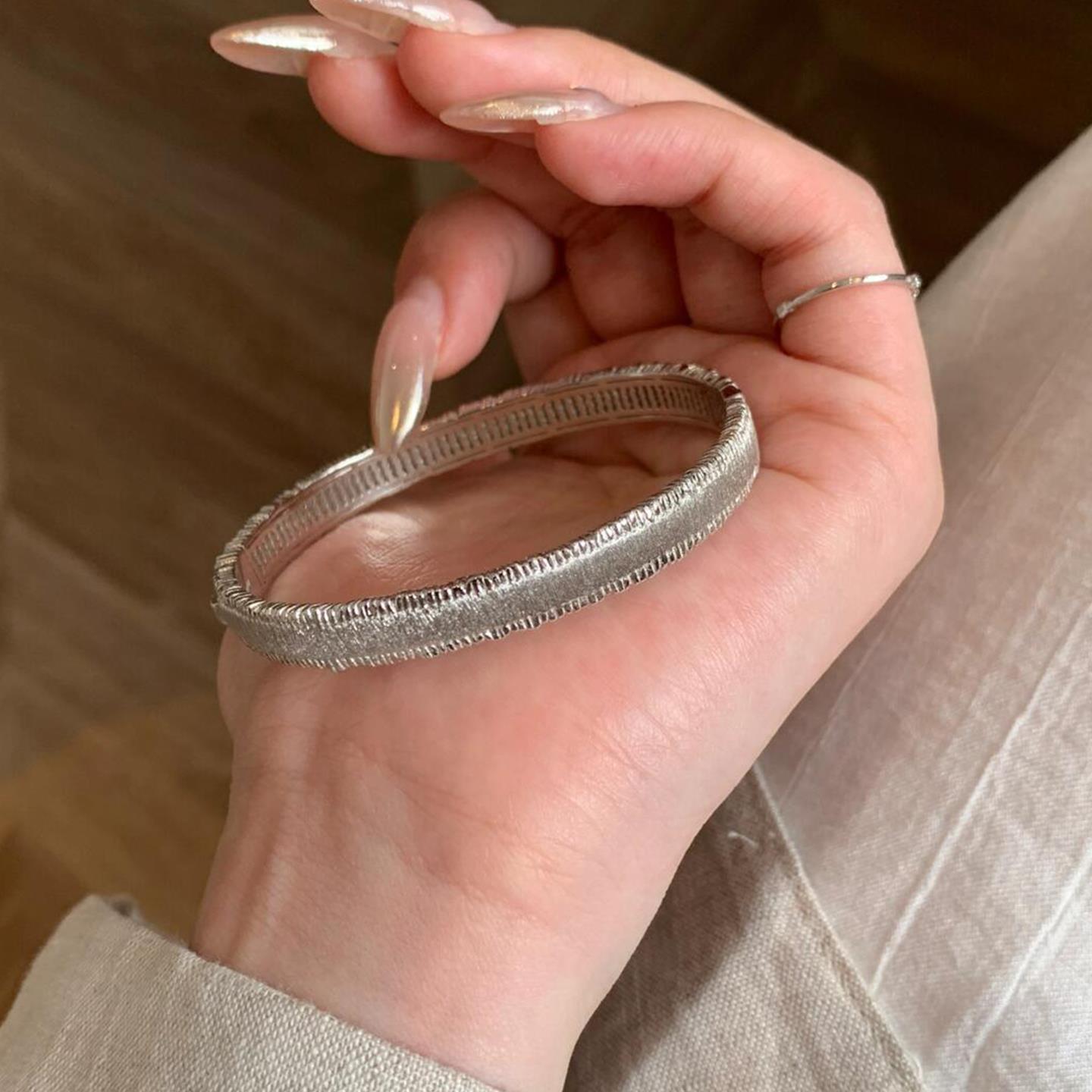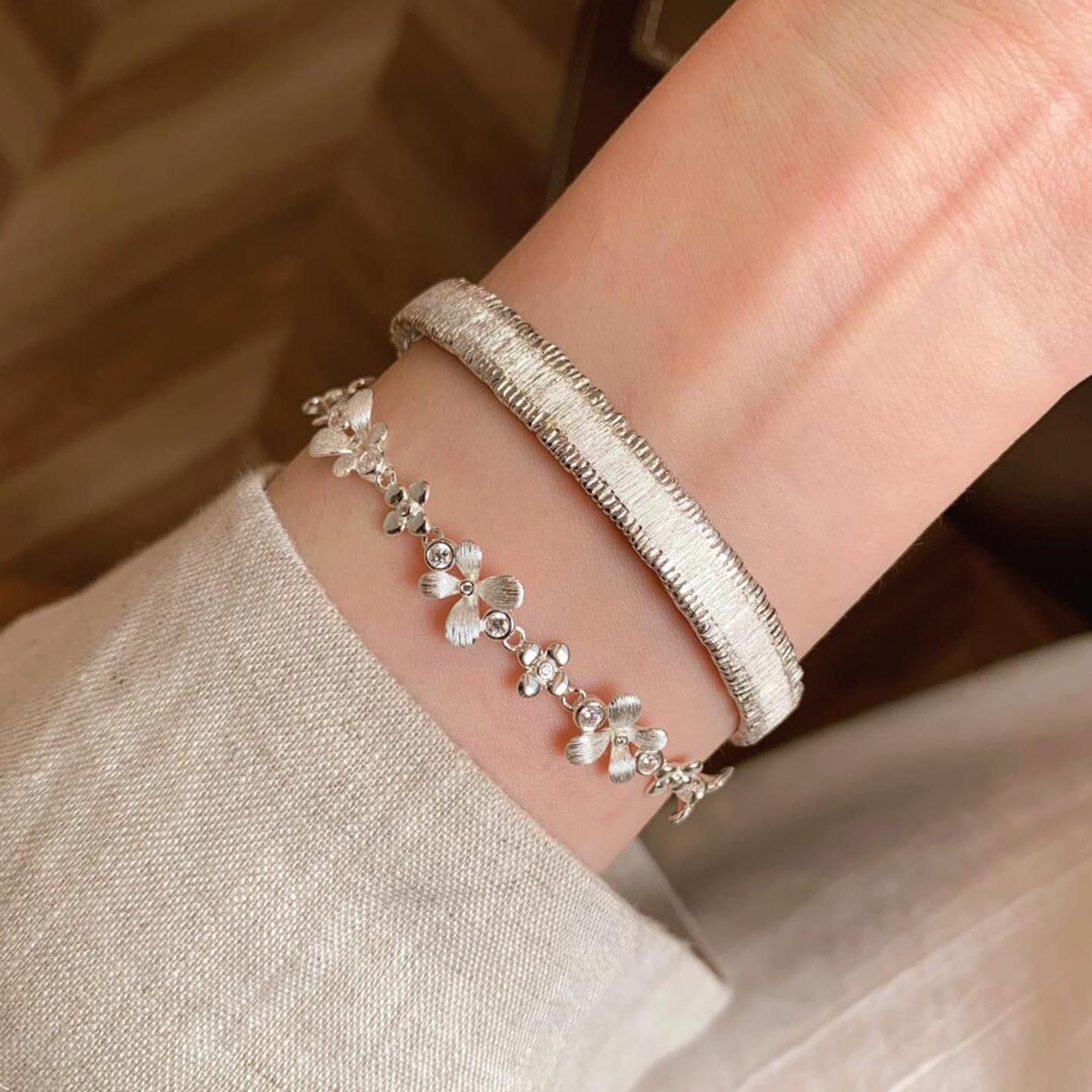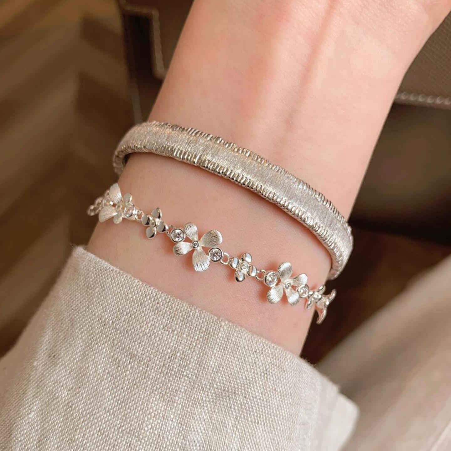 S925纯银中古银色拉丝花朵泡泡圆钻手链复古轻奢小众精致手镯手饰