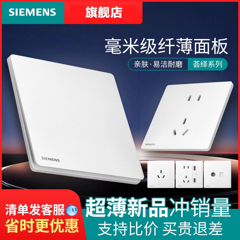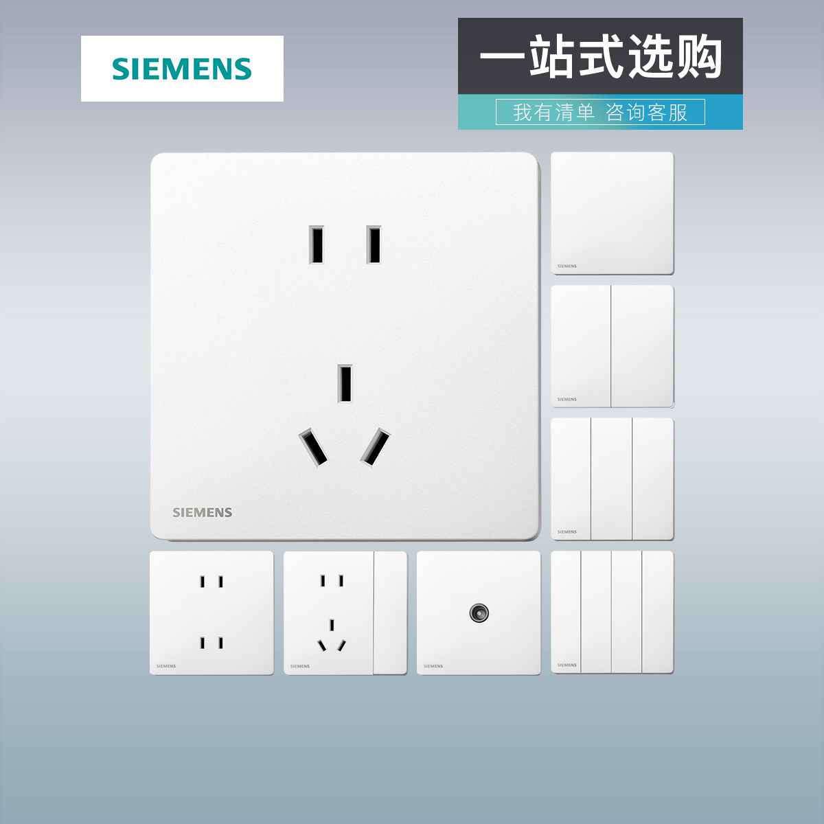 西门子开关插座超薄荟绎辰光白无框10A五孔USB一开空调家用套餐