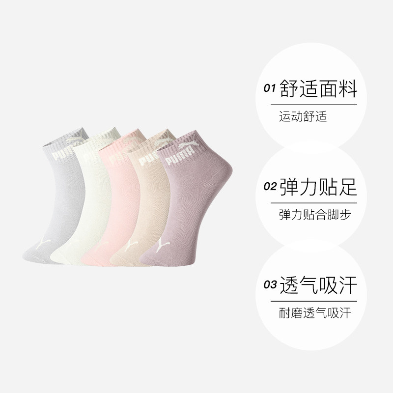 【自营】PUMA彪马袜子男女舒适透气运动休闲纯色百搭中筒袜5双装