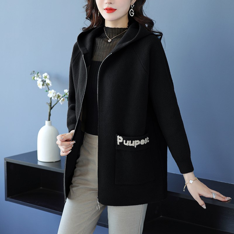 加肥加大码女装秋冬双面羊绒外套上衣洋气质中年妈妈连帽毛呢大衣