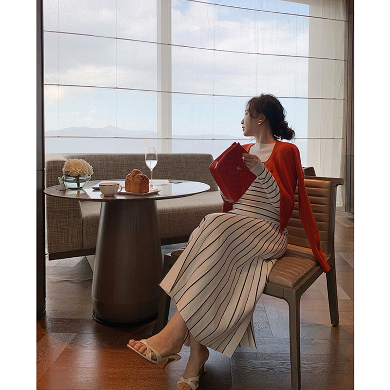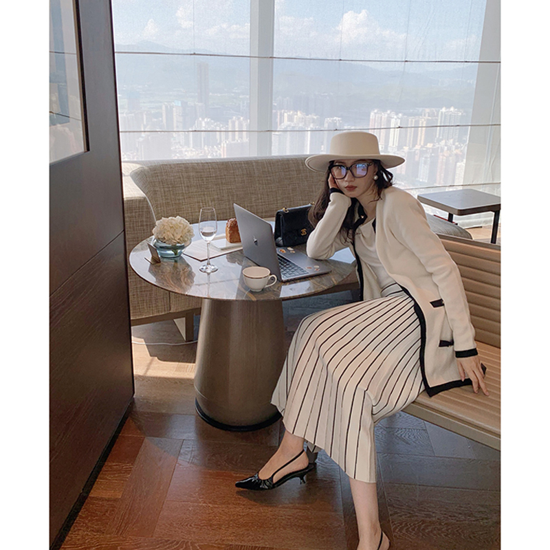 weekendcruise航海条纹套装女秋冬奶糯风针织衫上衣半身裙两件套
