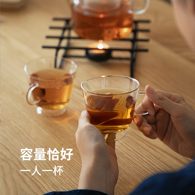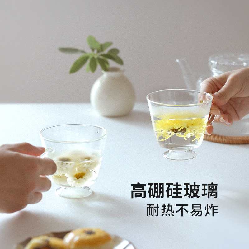 霜山高硼硅玻璃杯带把品茗杯家用带底座花茶杯泡茶茶具水杯230ml