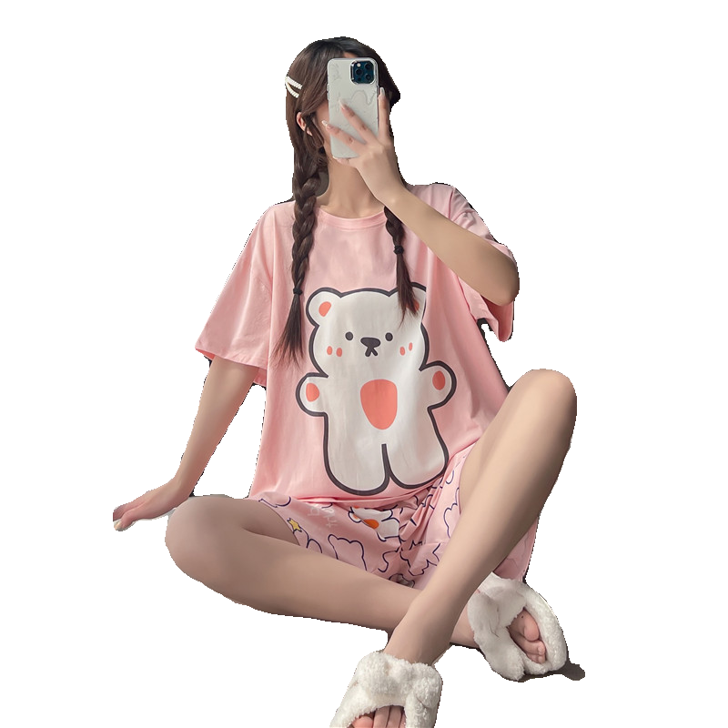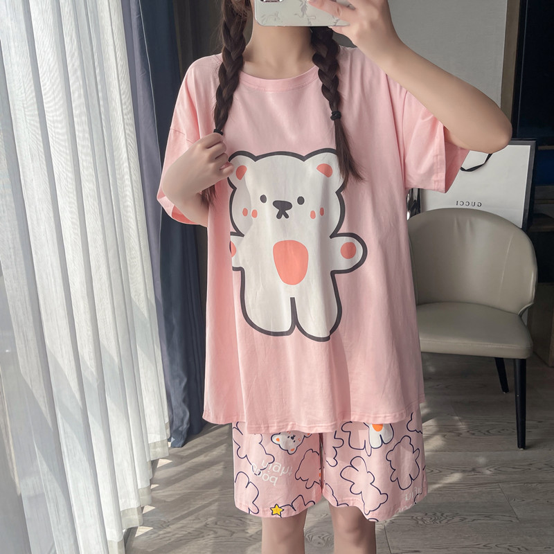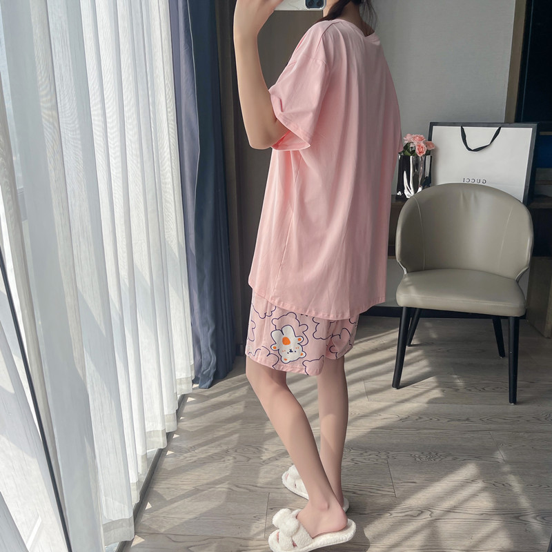短袖短裤卡通夏季纯棉睡衣女胖mm加大码200斤宽松圆领家居服套装