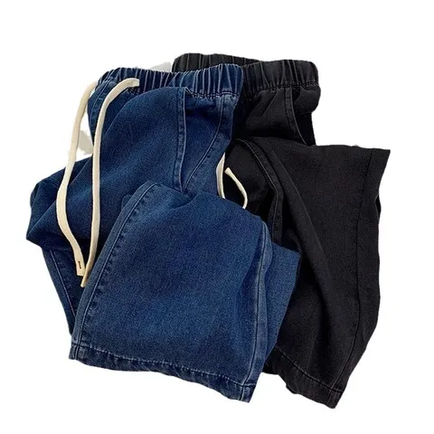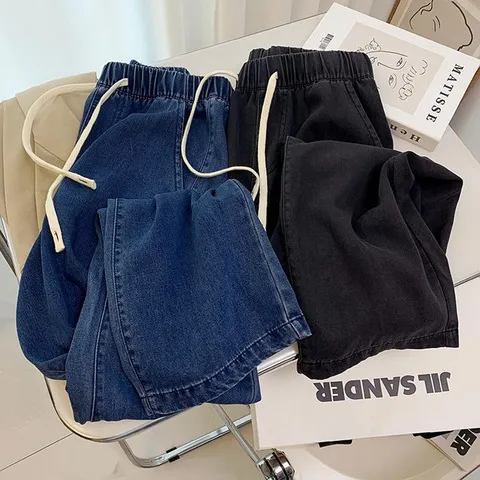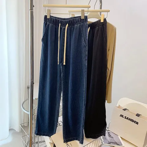 天丝牛仔裤显瘦休闲阔腿高腰2023女新款宽松直筒秋季垂感松紧长裤