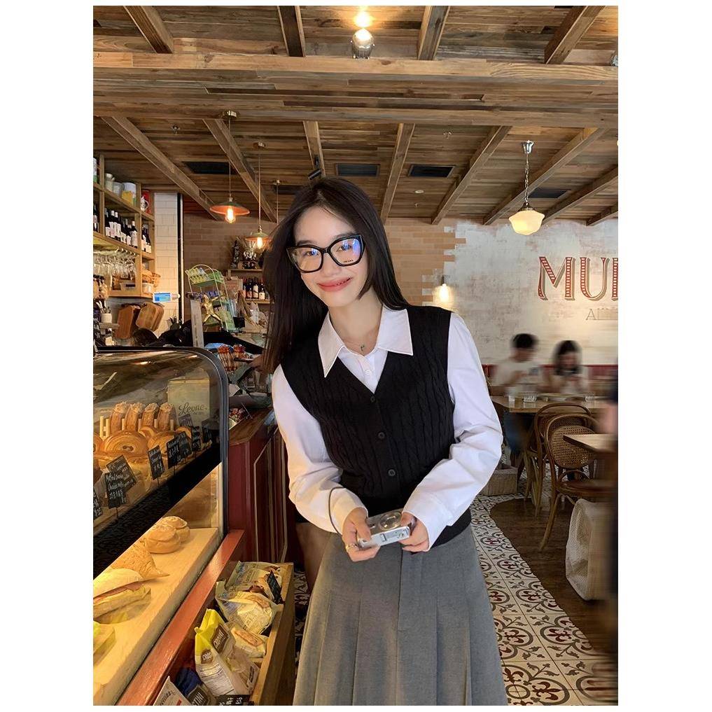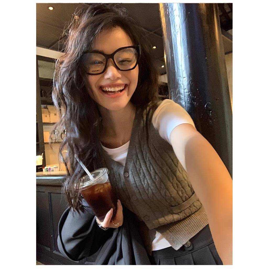 学院风羊毛马甲开衫女修身显瘦麻花毛衣坎肩V领针织衫背心短款春