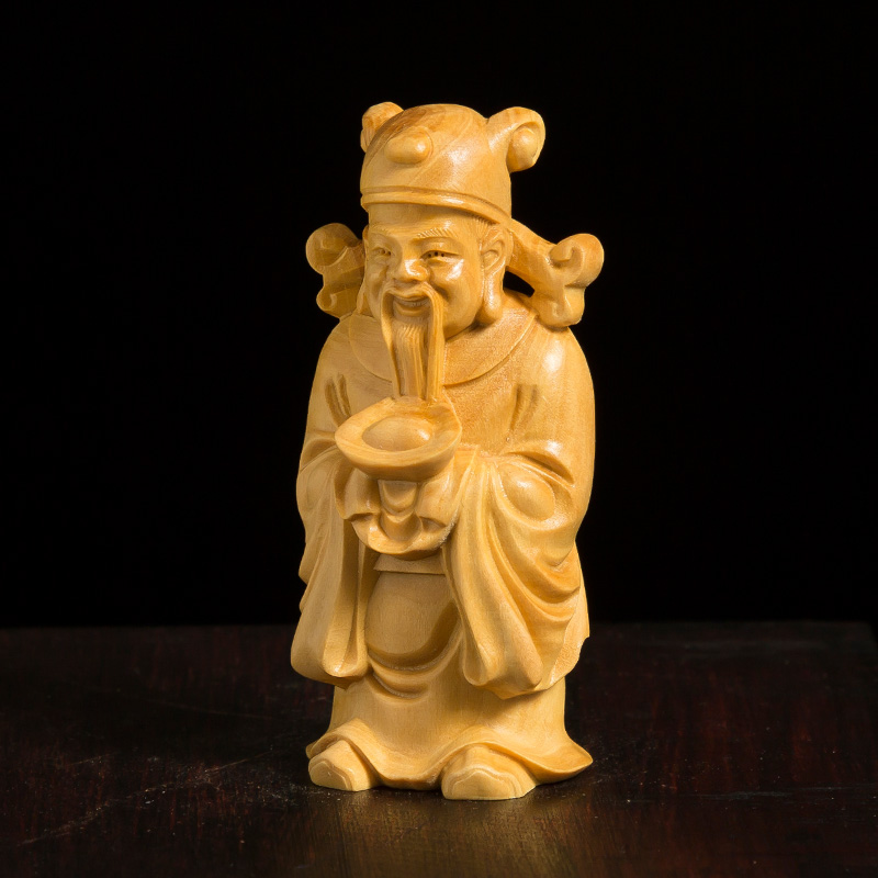 木雕文玩手把件黄杨木创意工艺品家用供奉实木佛像招财摆件财神爷