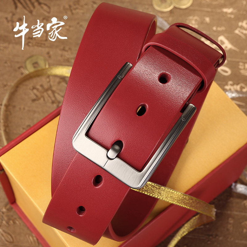皮带男真皮2025年蛇本命年红腰带男头层牛皮针扣裤带红色皮带裤带