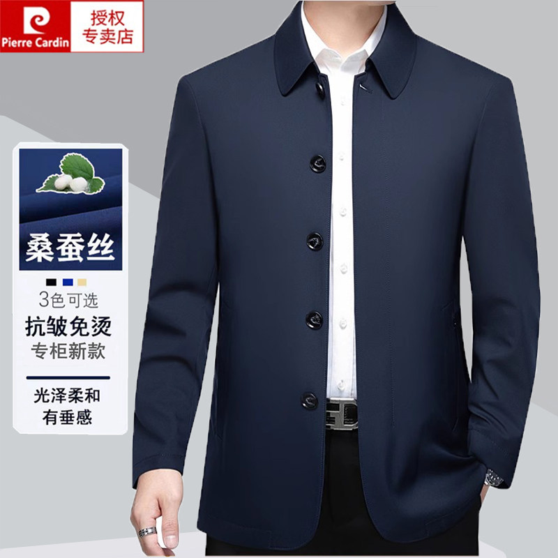 皮尔卡丹桑蚕丝春秋5扣夹克外套