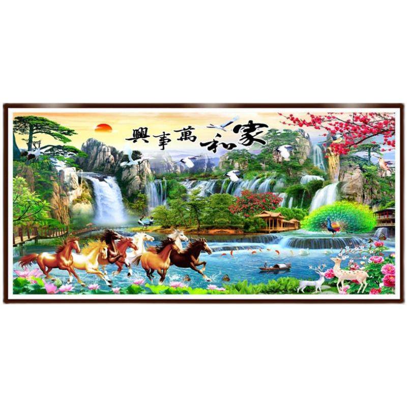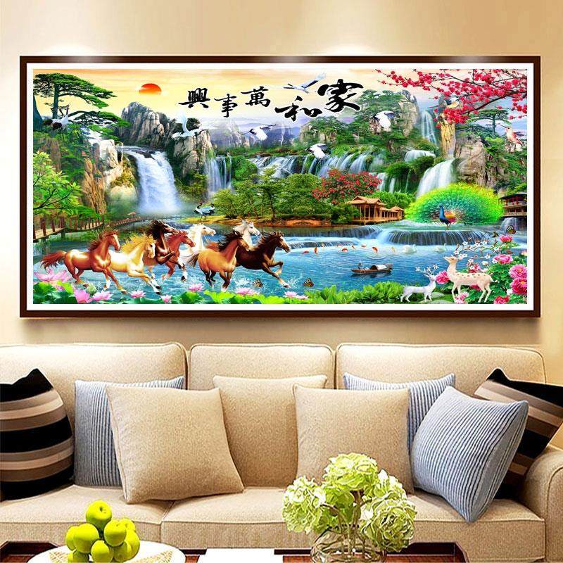 八骏图钻石绣客厅钻石画2024新款山水风景满钻手工点贴粘钻十字绣