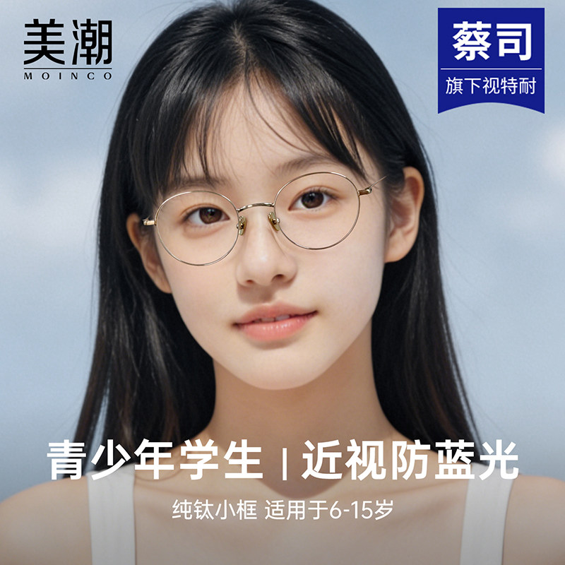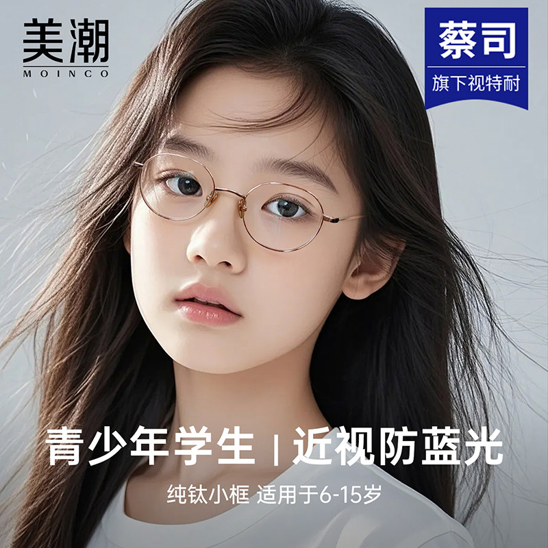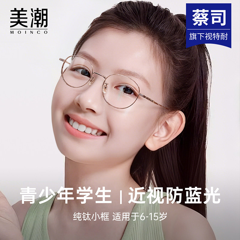 青少年近视眼镜女专业配镜防蓝光辐射护眼儿童学生专用纯钛小框架