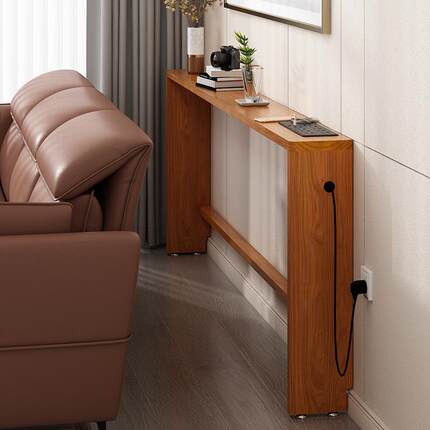功能电动沙发后置物架实木带插座窄夹缝双层防撞背柜长条桌书架