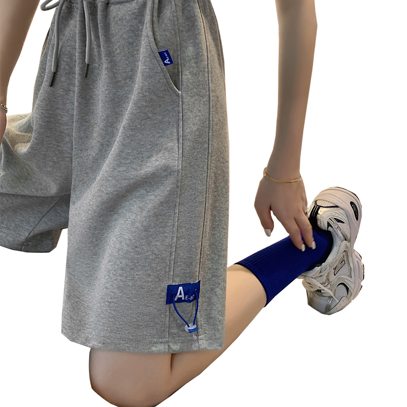 灰色运动短裤女夏季薄款阔腿裤2025新款港味外穿健身休闲五分裤子