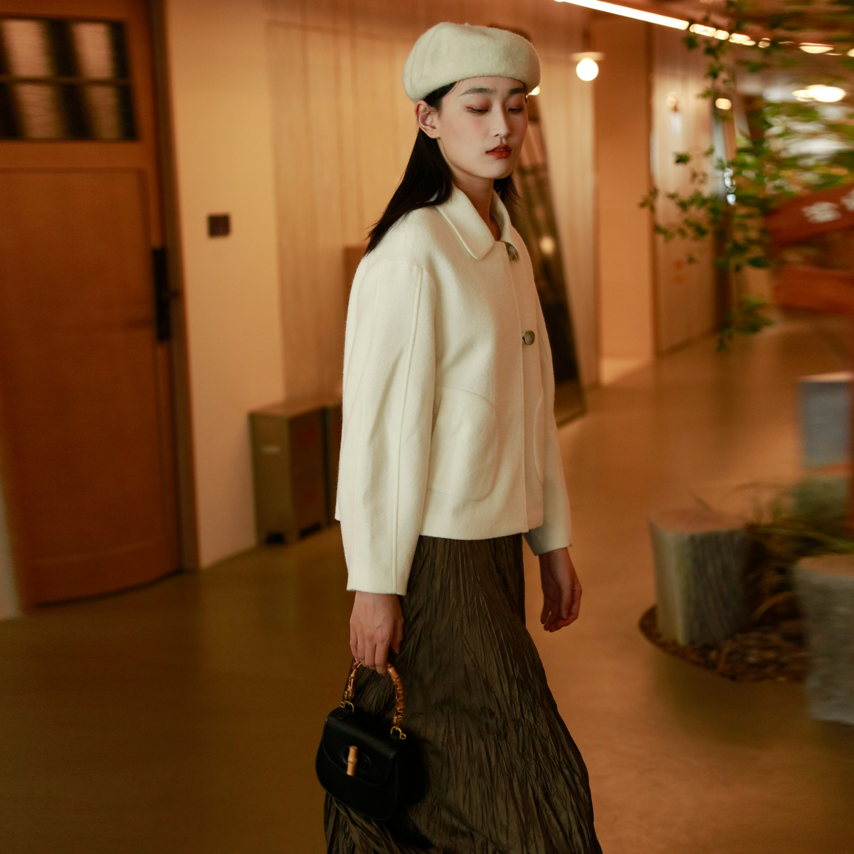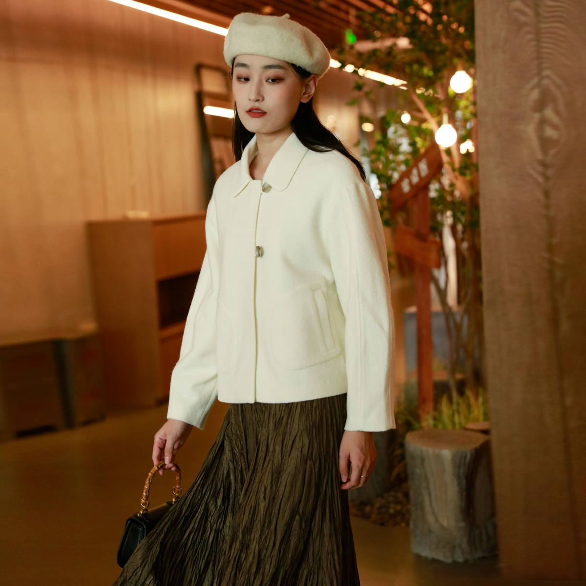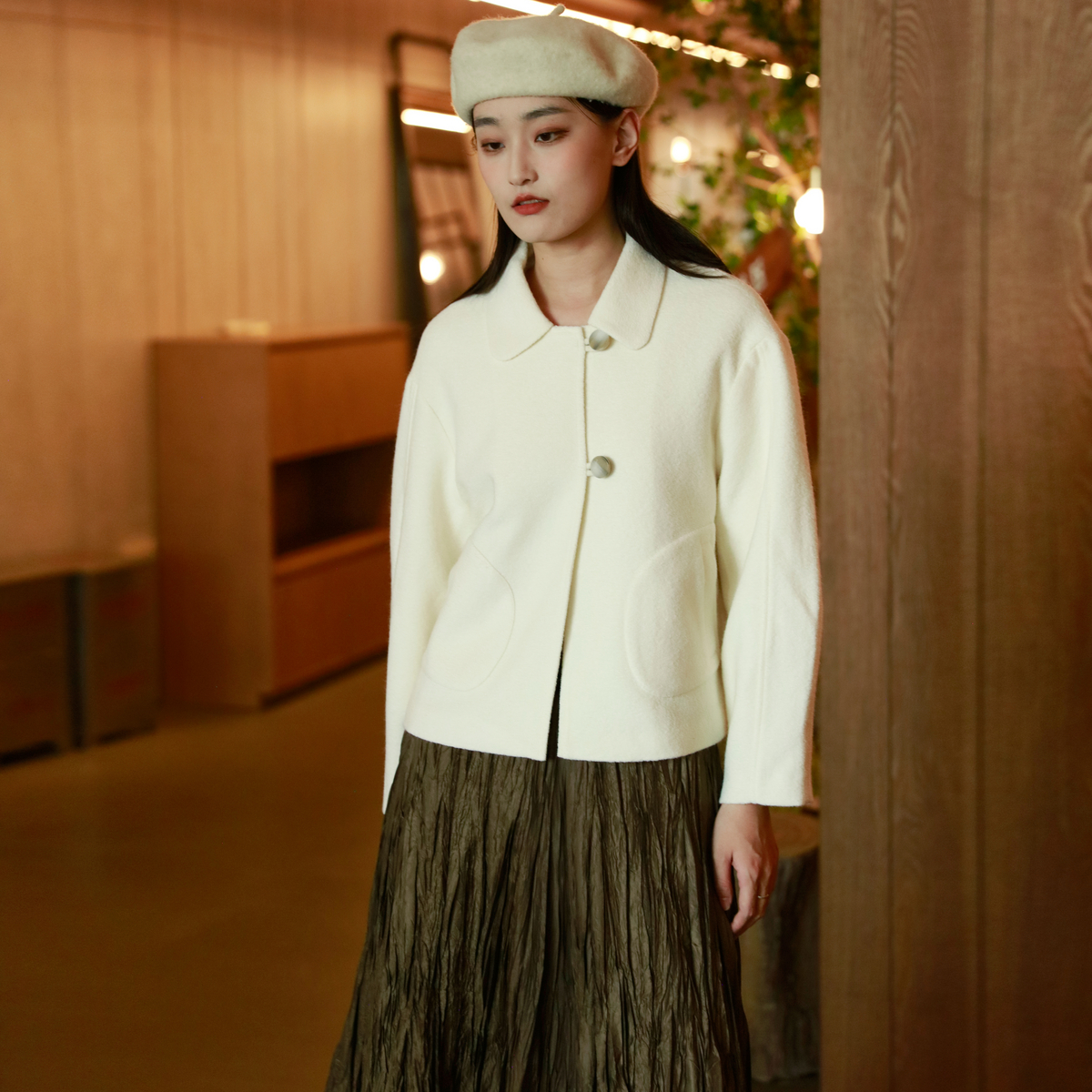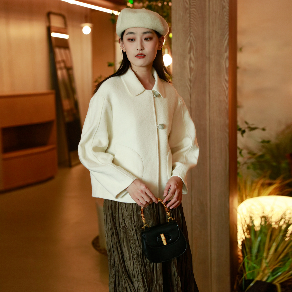 西町村屋外套女冬季新款简约百搭款渐变扣设计短款外搭AD8219194