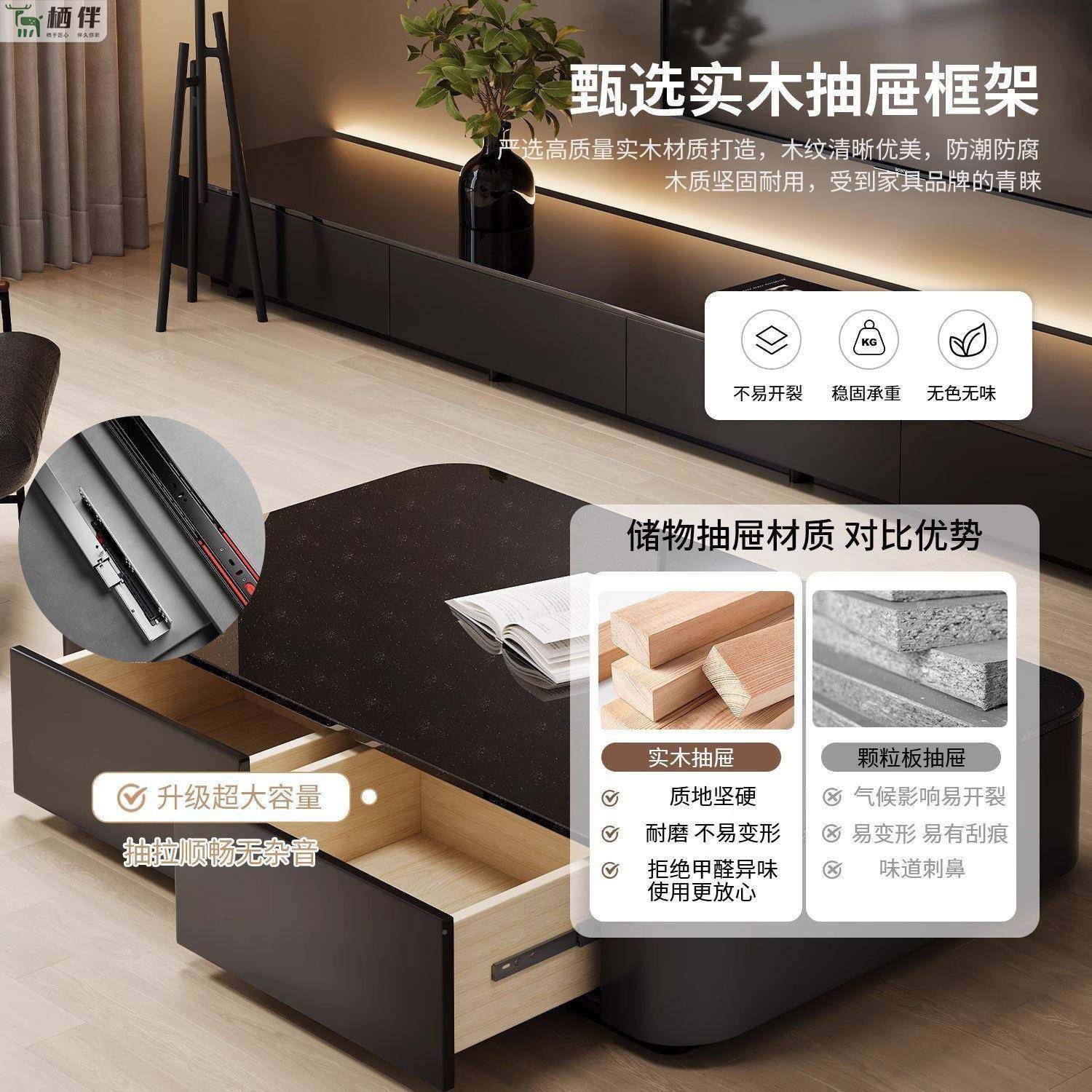 轻几奢木电视机柜电实视落柜茶IAJ几地高级感家具套装电视柜茶组