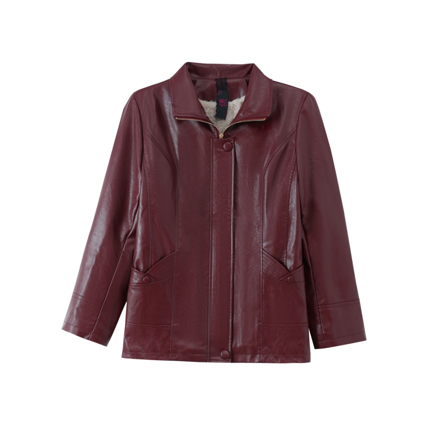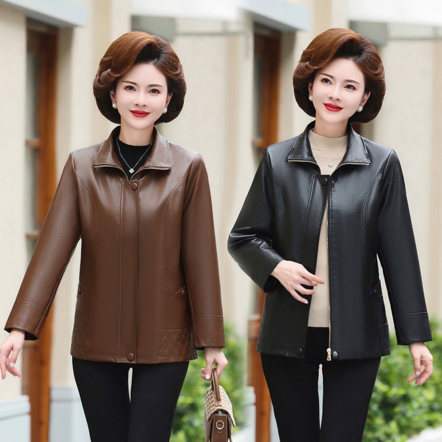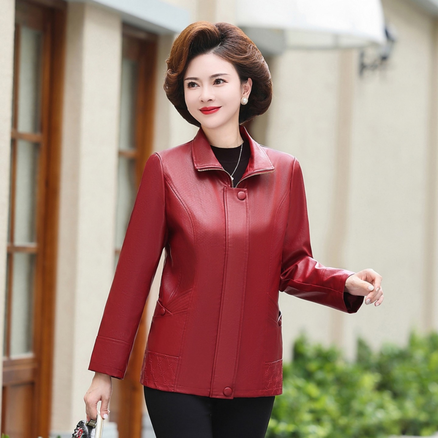 恒源祥中年女春装皮衣夹克新款春秋妈妈外套40岁50短款时尚上衣