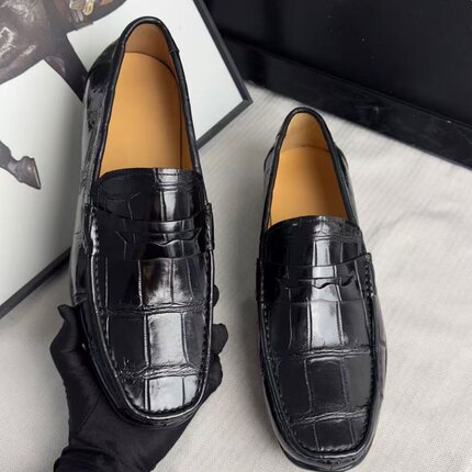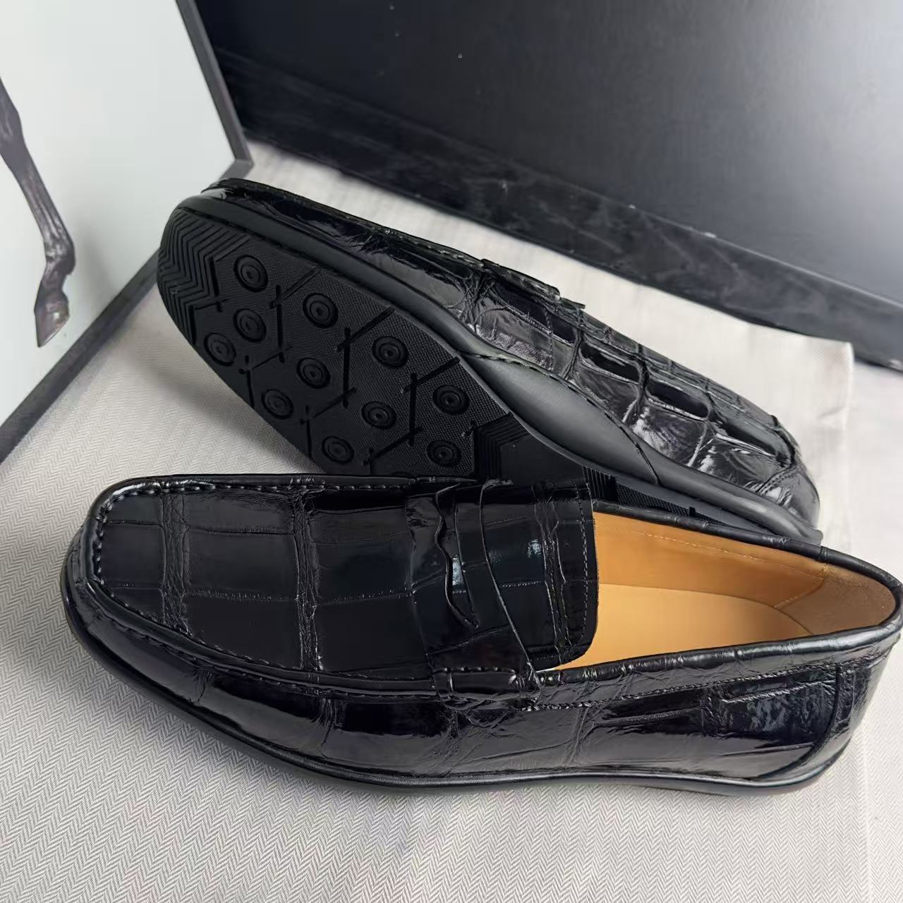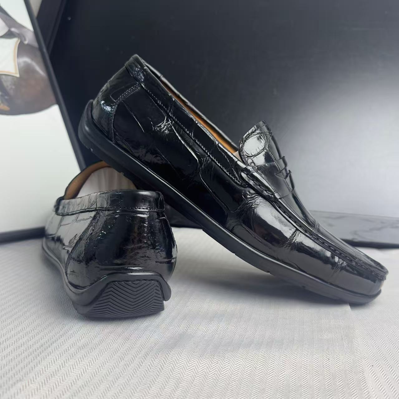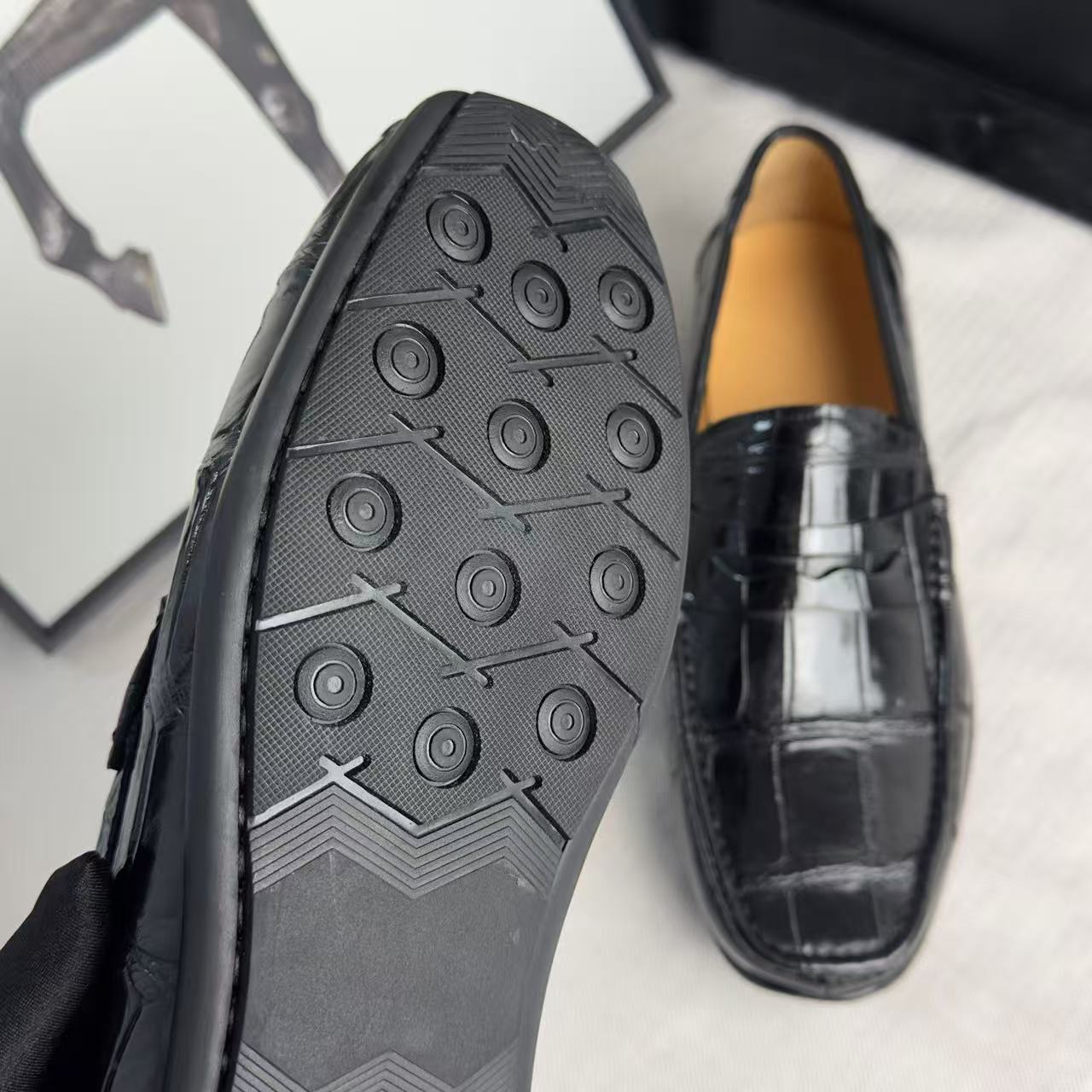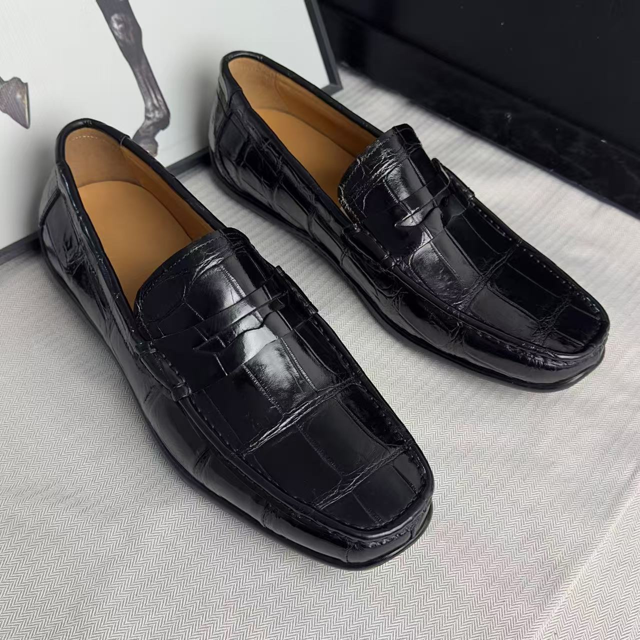 高端秋冬男士休闲皮鞋真皮软皮鳄鱼皮潮流豆豆鞋乐福鞋时尚男鞋