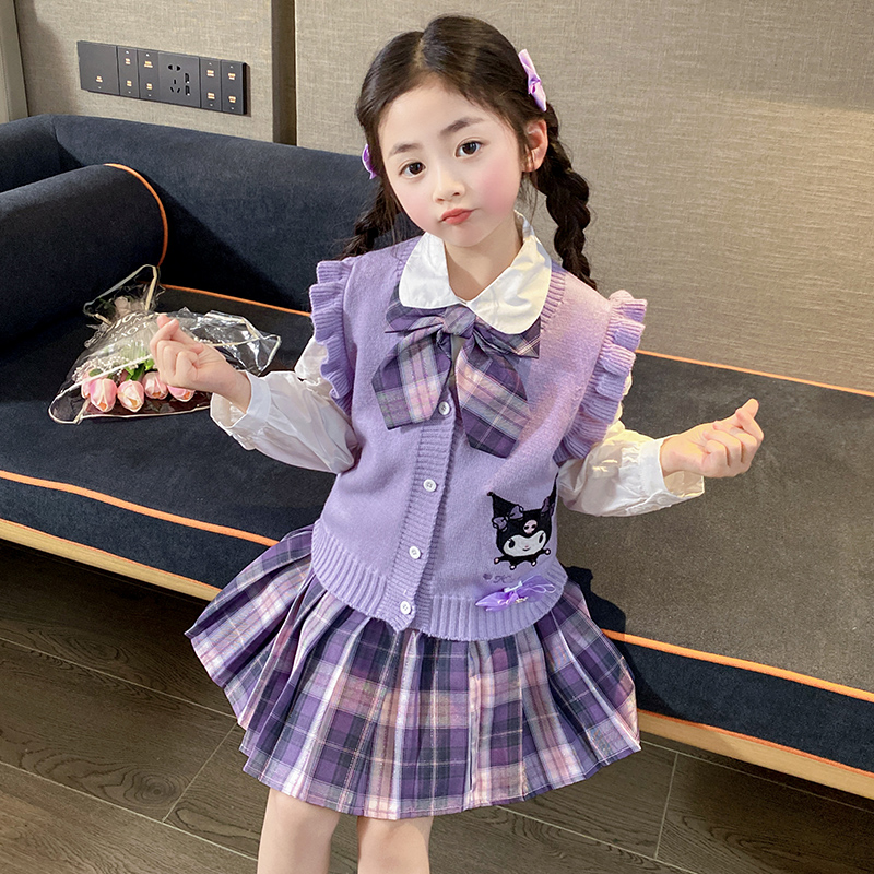 高级感儿童JK制服三件套春装库洛米针织毛衣开衫搭配女童百褶短裙