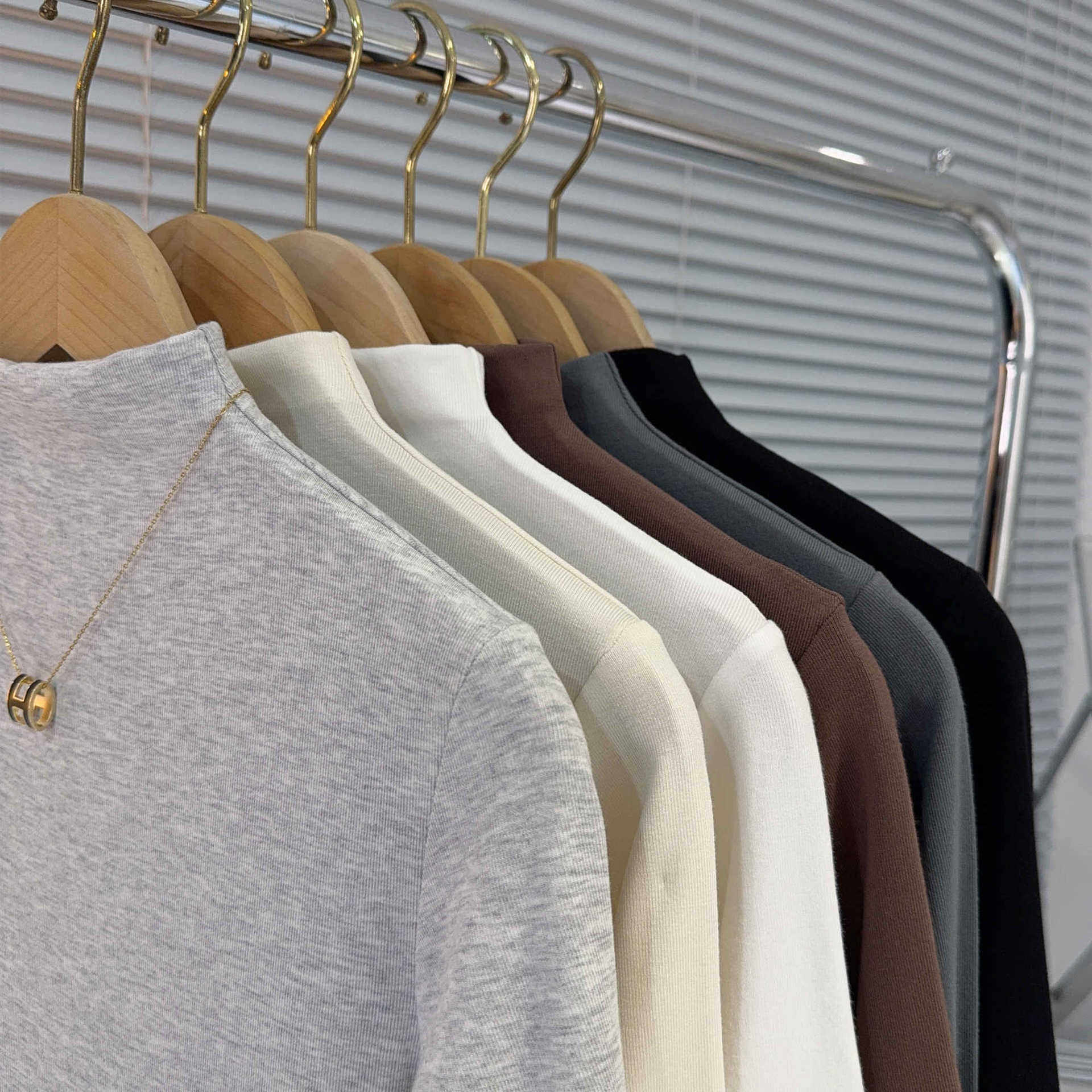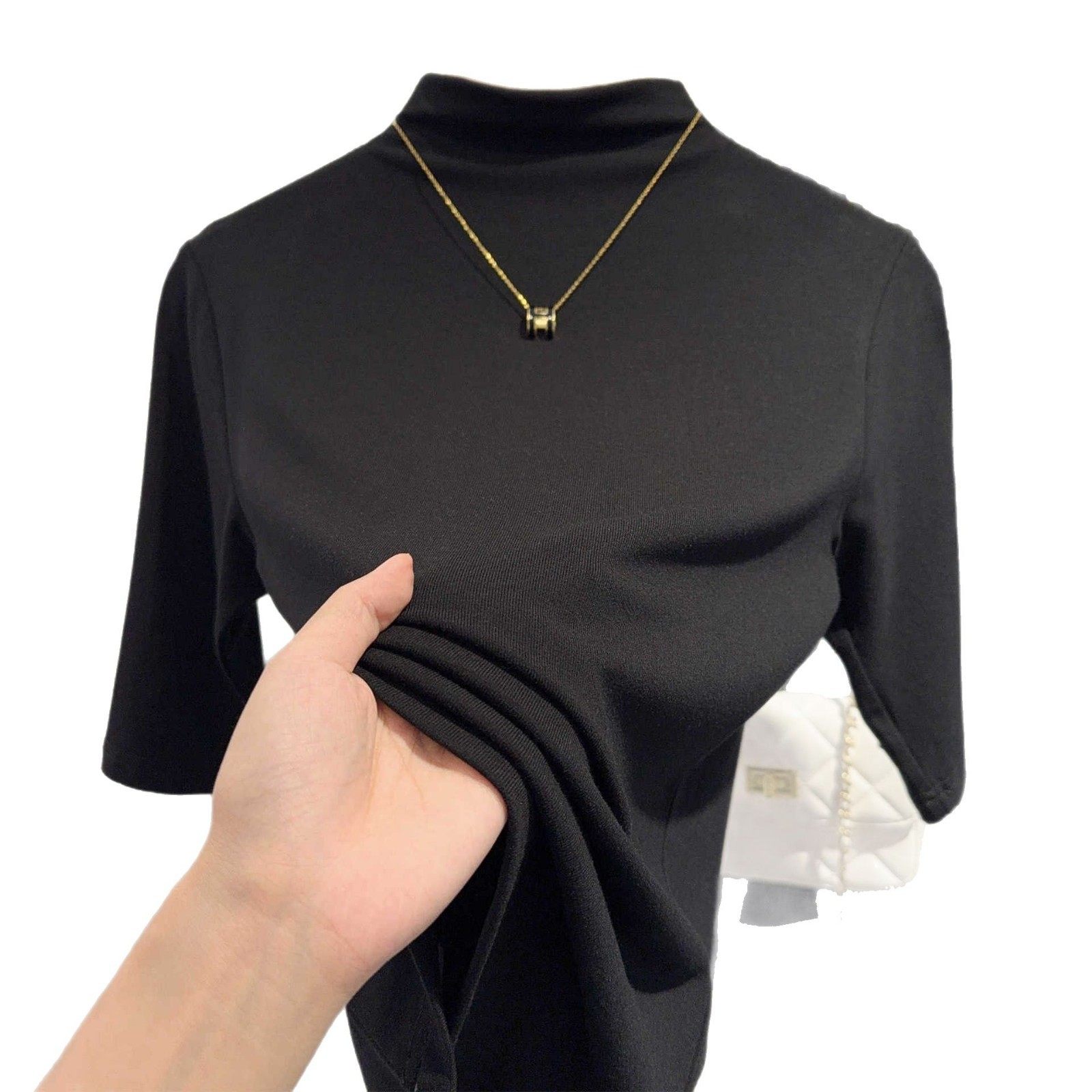 螺纹棉半高领修身五分袖女T恤