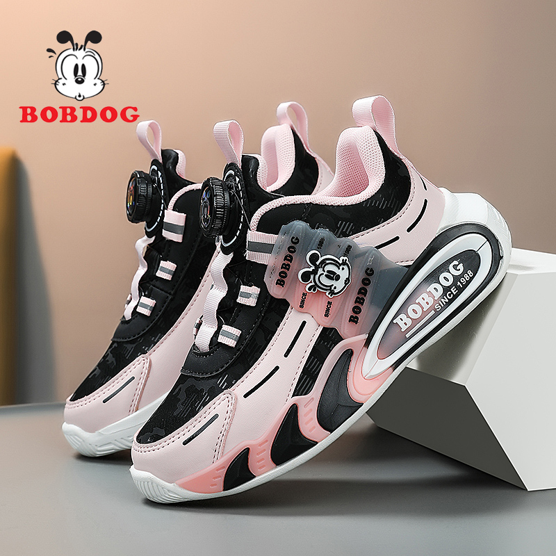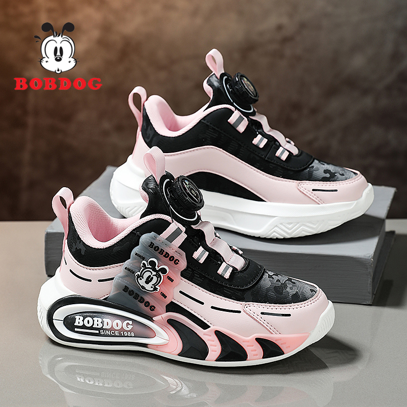 巴布豆童鞋女童运动鞋2025春秋新款轻便跑步软底黑色儿童鞋子女孩