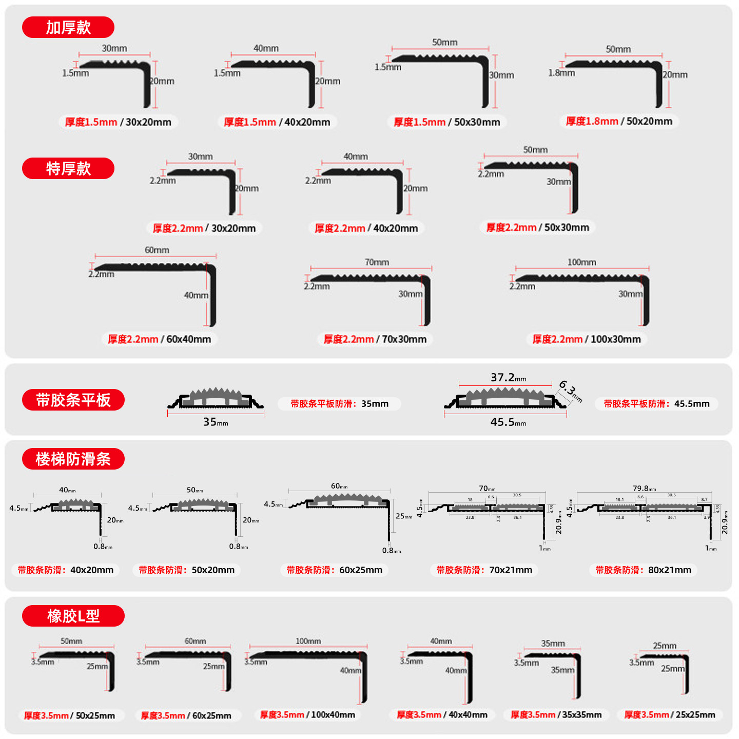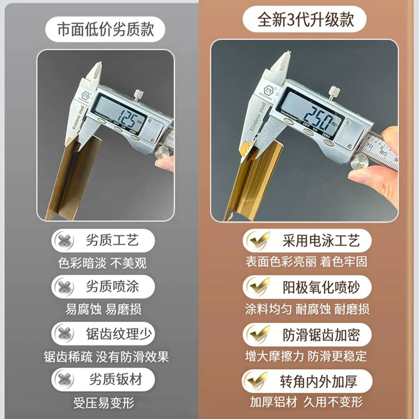 铝合金楼梯防滑条台阶踏步包边条L型压边条护角收口条金属收边条