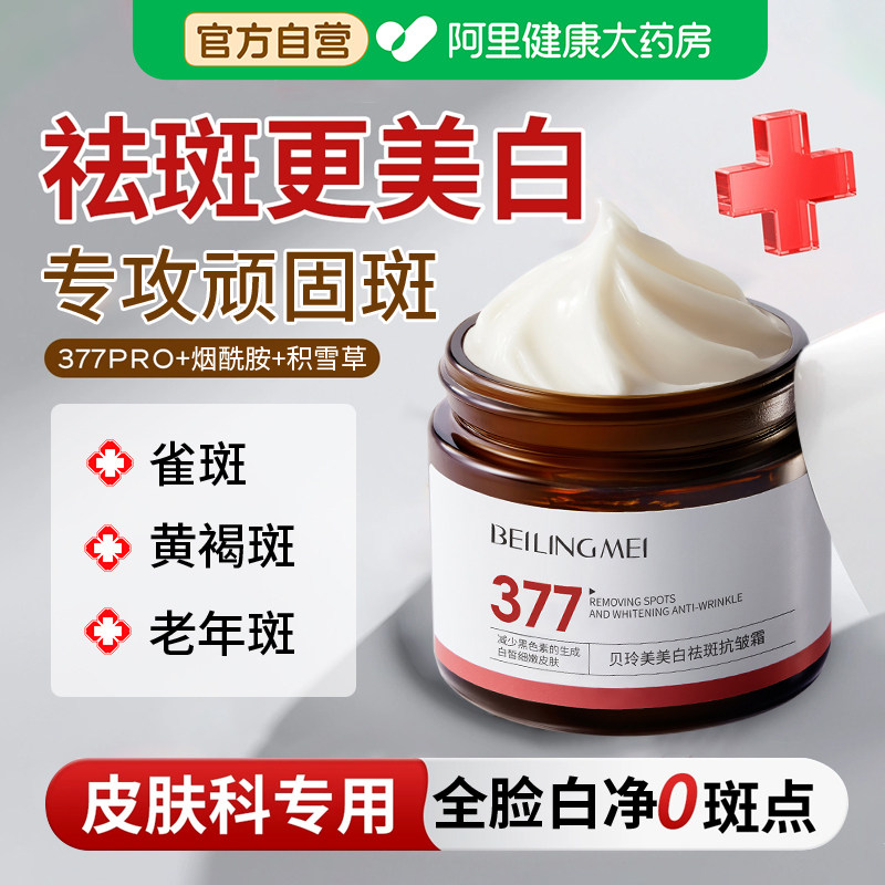 377美白祛斑面霜祛黄褐斑雀斑色斑去黄提亮保湿烟酰胺女官方正品