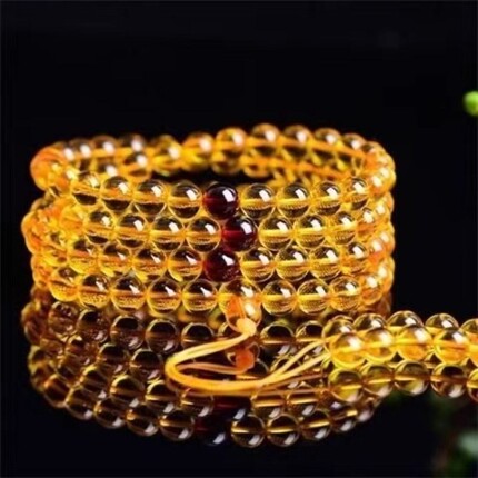 精选二代琥珀蜜蜡佛珠链多圈手链男女108颗佛珠树脂蜜蜡手串项链