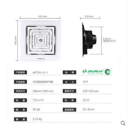 金羚排气扇/换气扇 吸顶式12寸天花直排排风扇抽风机 APT30-5-1