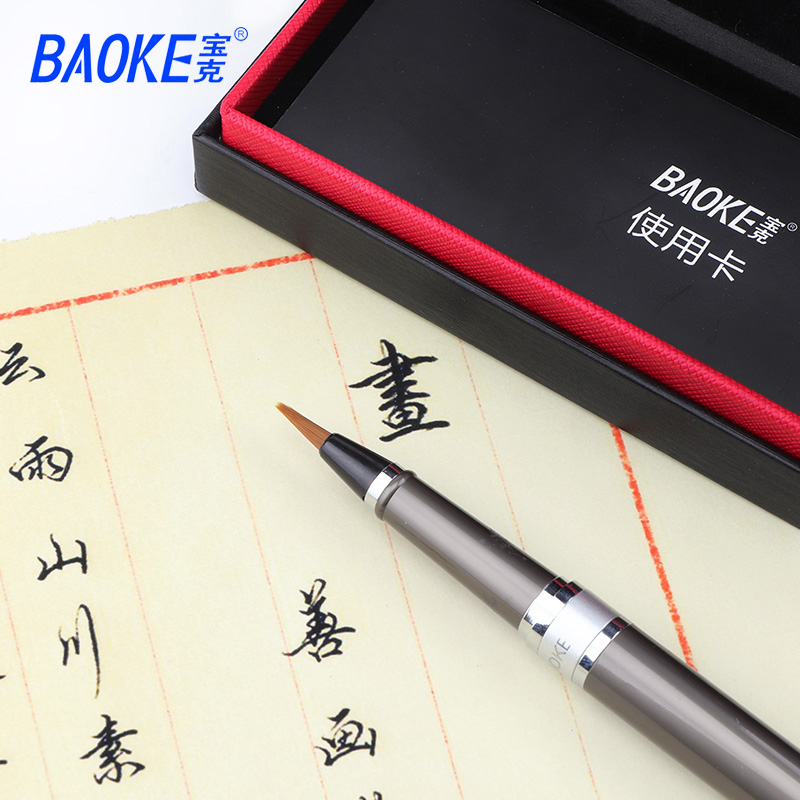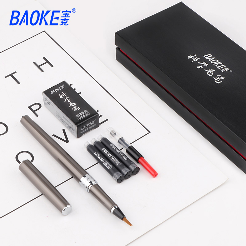 宝克S40科学毛笔小楷金属笔杆尼龙笔尖黑色商务送礼旋转吸墨或替换墨囊