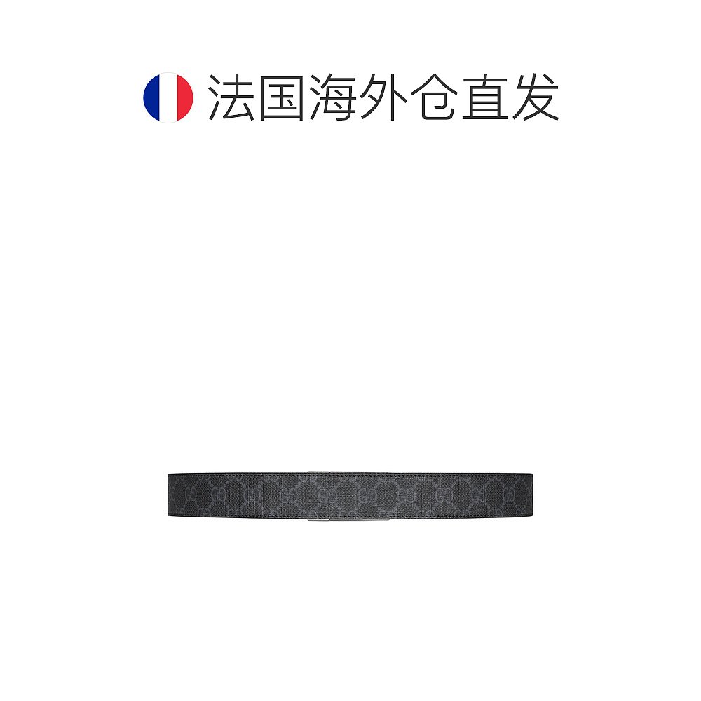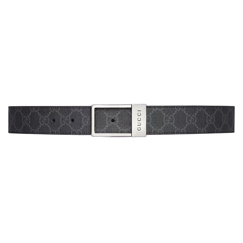 自营GUCCI古驰 23新款 男士黑色老花帆布银色方扣腰带3.5cm