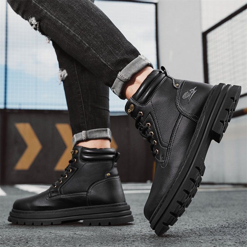 莆田黑色马丁靴男款英伦复古高帮皮靴时尚工装靴厚底耐磨机车靴子