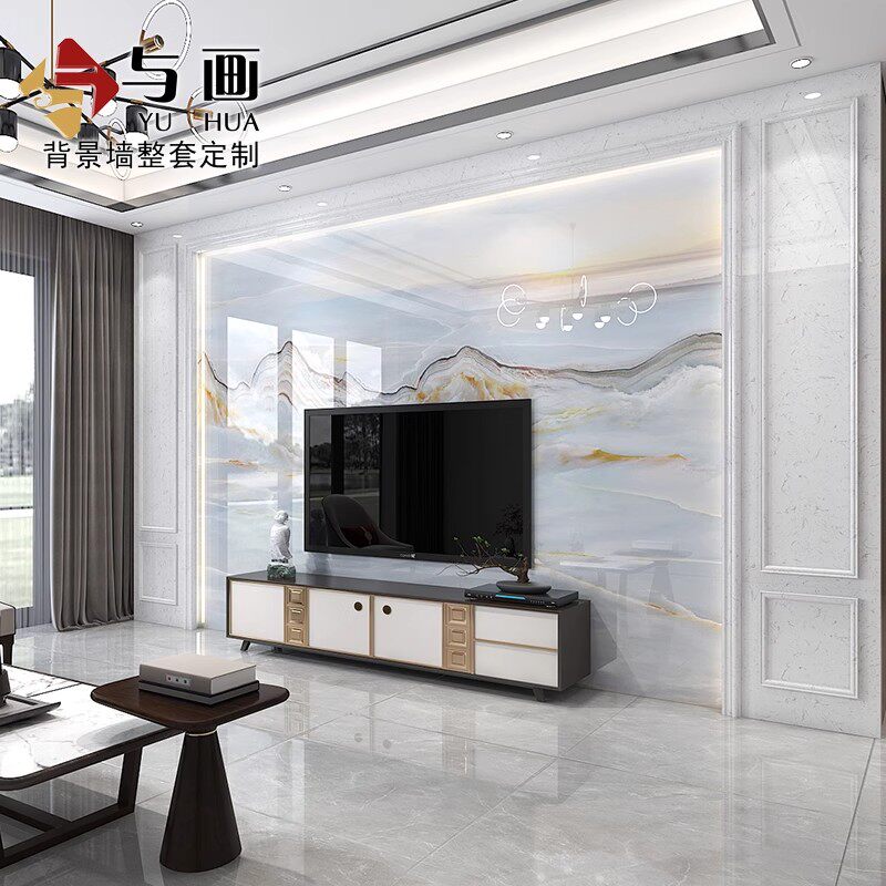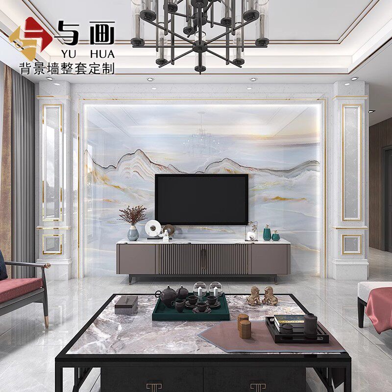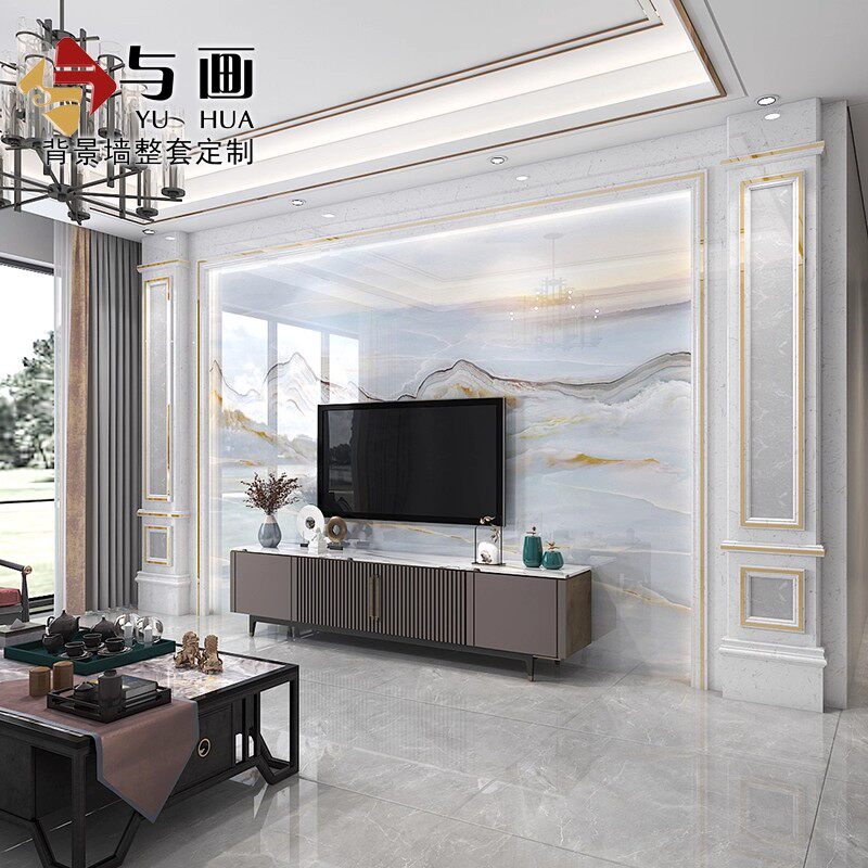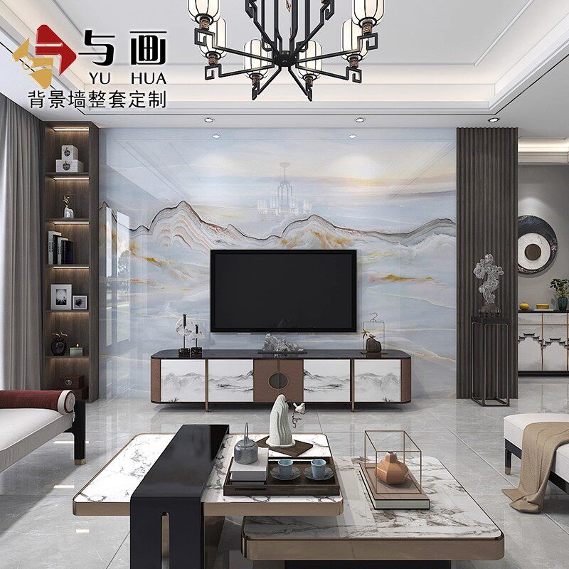 大理石电视背景墙瓷砖新中式微晶石现代简约客厅轻奢风影视墙装饰