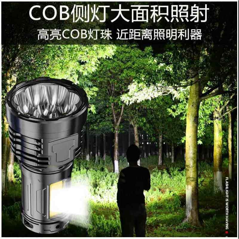 八灯手电筒强光充电超亮户外家用便携头LED远射灯电灯巡逻探照灯